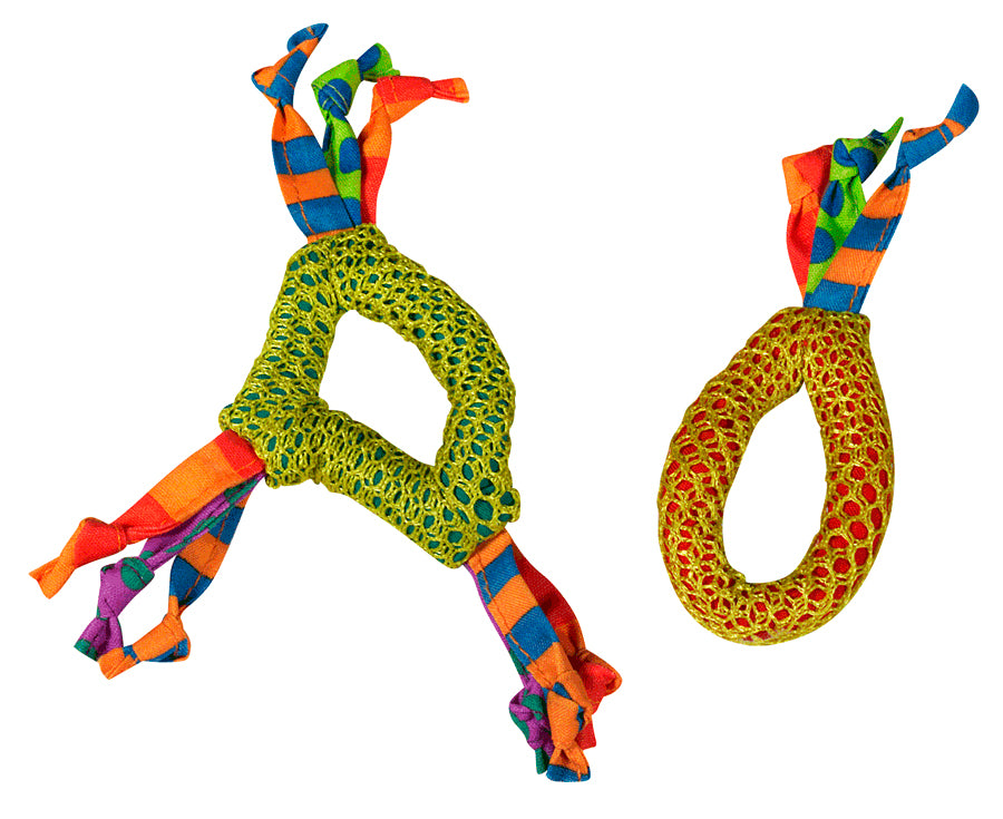 De Catstages Catnip Dental Health Chew speeltjes zijn speciaal ontworpen om het gebit van jouw kat in topconditie te houden. Het draad wat om het speeltje gewikkeld zit verwijdert tandplak wanneer jouw kat ermee speelt en erop kauwt. Om het speeltje nóg aantrekkelijker te maken, is het gevuld met catnip. Het netje zal niet gaan rafelen tijdens het kauwen. De twee speeltjes passen mooi bij elkaar door het kleurrijke ontwerp!