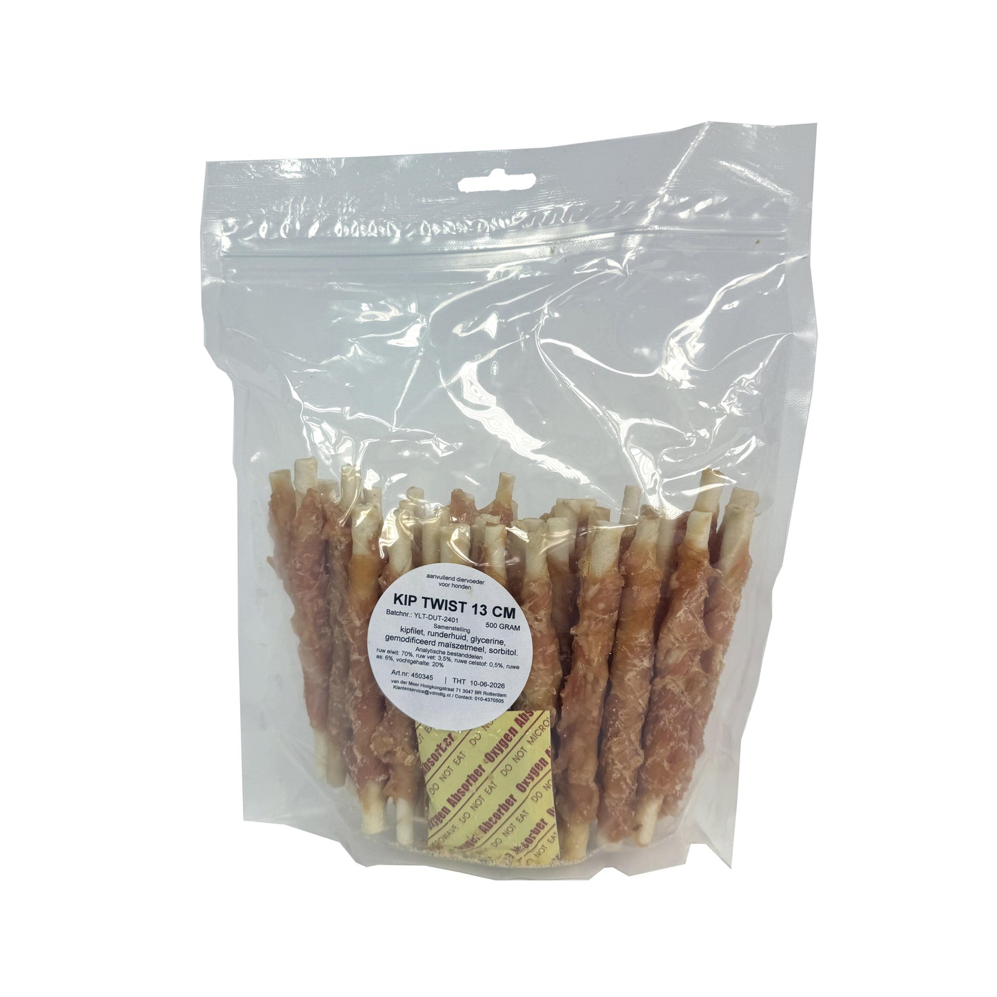 De I Am Kip Twist 13 cm 500 gr is een lekkere kauwsnack voor jouw hond van kipfilet en runderhuid. Een heerlijke snack voor de hond! Door op deze snack te kluiven help jij de tanden van jouw hond te verzorgen en verveling tegen te gaan. De runderhuid wordt langzaam zachter en helpt tandplak te verminderen door het wrijven langs de tanden. Door de toevoeging van kipfilet is de Kip Twist nog aantrekkelijker voor jouw hond.