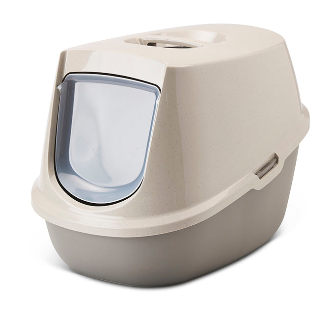 Savic Kattenbak Happy Planet Manon Mocca / Warmgrijs 54,5 x 45 x 39 cm is een kattenbak met bovenkap, gemaakt van gerecycled, milieuvriendelijk plastic. Eenvoudig in gebruik, stijlvol en vriendelijk voor het milieu! Deze kattenbak van Savic is van alle markten thuis. De Manon is een kattenbak met bovenkap die het uitgooien van kattenbakgrit helpt verminderen en de kat meer privacy geeft. Ook worden ongewenste geurtjes zo beperkt tot binnenin de kattenbak, net als door meegeleverde, vervangbare koolfilter die luchtjes neutraliseert en zorgt voor een fris ruikende omgeving. De kattenbak is bovendien gemaakt van gerecycled plastic, gemaakt uit gereinigd huishoudelijk plastic afval. Zo heeft het produceren van deze kattenbak veel minder negatieve impact op het milieu!