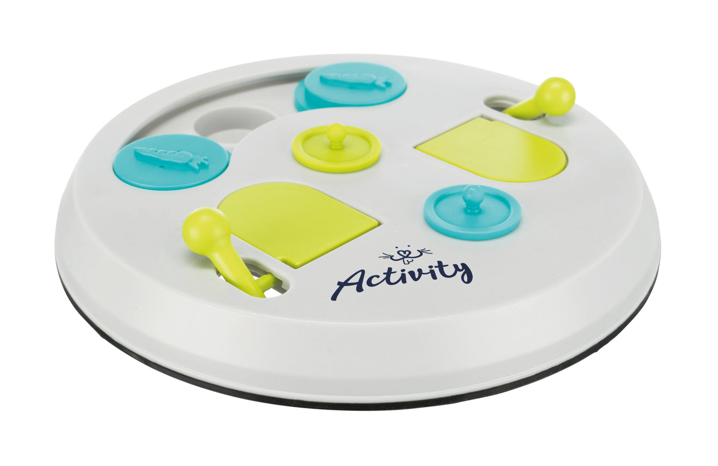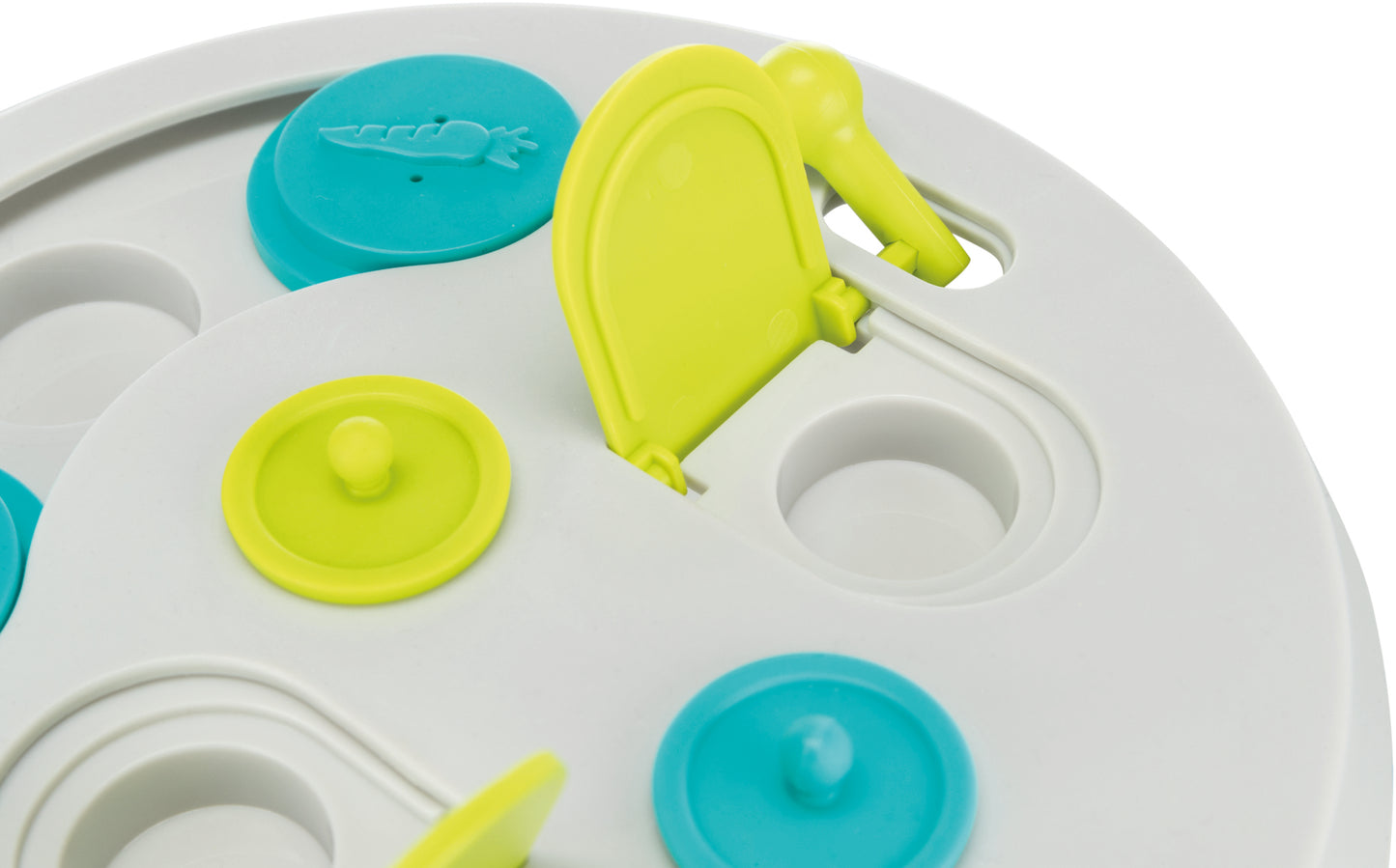 Het Trixie Flip Board Knaagdier 23 x 23 cm is een intelligentiespel voor konijnen en knaagdieren, met kommetjes en deksels waaronder het dier zijn beloning moet zoeken. Gaat verveling tegen en daagt jouw konijn of knaagdier mentaal uit! Dit Flip Board is een intelligentiespel met diverse deksels waaronder jouw dier naar zijn beloning moet zoeken. Deze diervriendelijke bezigheid sluit aan bij de natuurlijke foerageerinstincten van het dier en biedt een mentale uitdaging, waardoor verveling wordt tegengegaan. Het spel is uitgerust met verschillende deksels, zoals klap- en schuifdeksels voor meer uitdaging. Het Flip Board is gemaakt van kunststof en is slipvast door de rubberen ring.