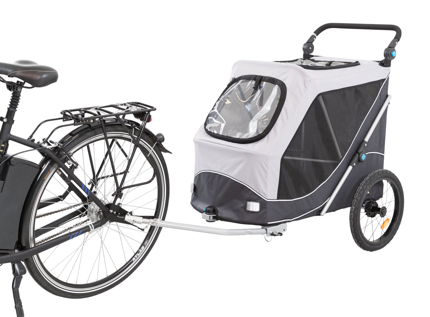 De Trixie Hondenfietskar Opvouwbaar Grijs van 103X74X95 cm is een handige kar die van alle gemakken voorzien is om jouw hond mee te nemen op fietstochtjes.