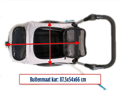 Totale buitenmaat aanhanger: 96X95X72 cm (lengte met stang 143 cm)