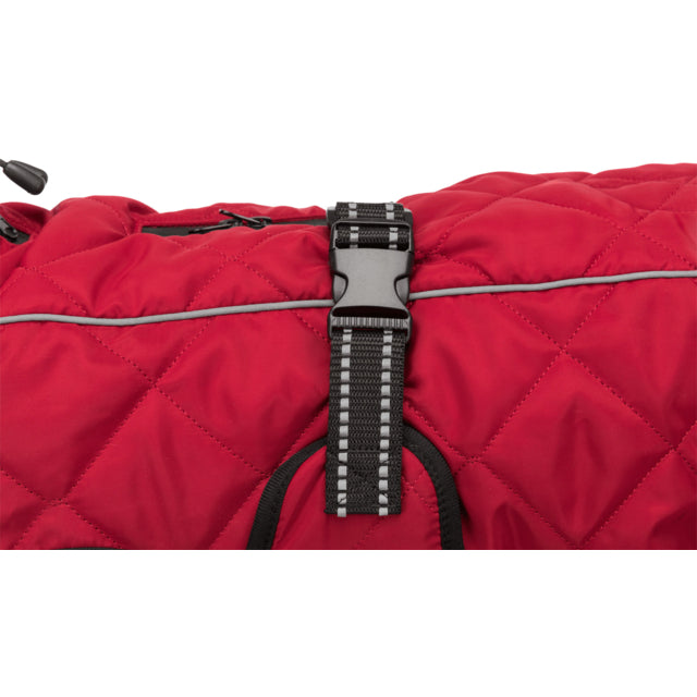 Trixie Hondenjas Minot Rood 50 cm is een comfortable jas voor kouder weer met kraag en reflecterende stroken, heerlijk zacht gevoerd! De jas heeft een stoer uiterlijk met de opstaande kraag, die jouw dier heerlijk warm houdt in de winter. De jas is gewatteerd en gevoerd met zacht fleece én voorzien van waterdichte ritssluitingen zodat jouw viervoeter droog en warm blijft tijdens de koude dagen. Door de traploos verstelbare buikriem met gesp en verstelbare beenlussen voor de achterpoten blijft de jas mooi op zijn plek zitten en door de trekkoorden bij de nek en de rug kun je hem precies passend maken voor de hond. Bovendien en is de jas voorzien van reflecterende stroken, zodat je op donkere winteravonden goed zichtbaar bent.