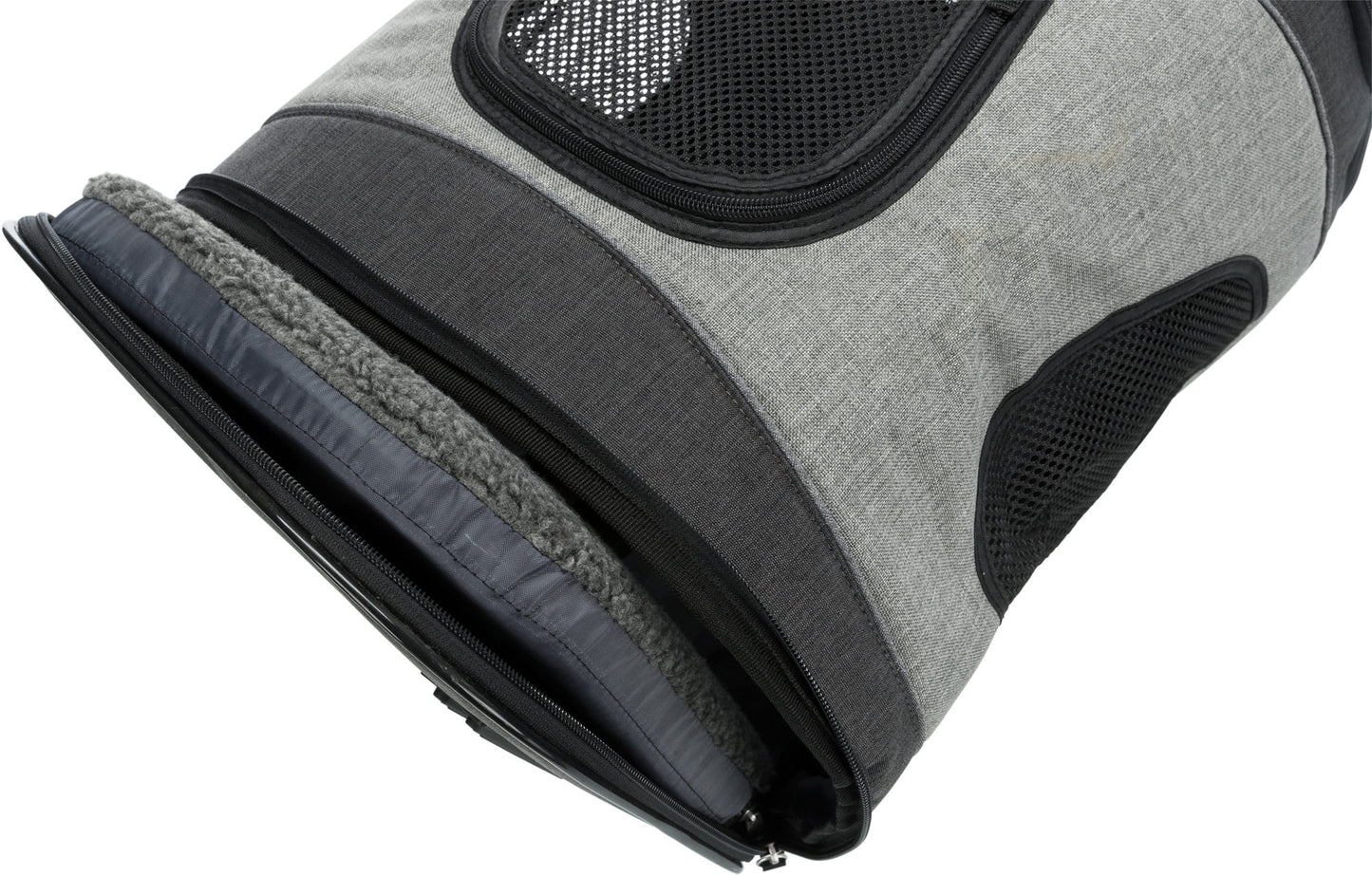 Deze Trixie Timon Hondendraagtas in zwart/grijs van 34X30X44 cm is een fijne rugtas waarmee je je hond overal mee naartoe op reis neemt.