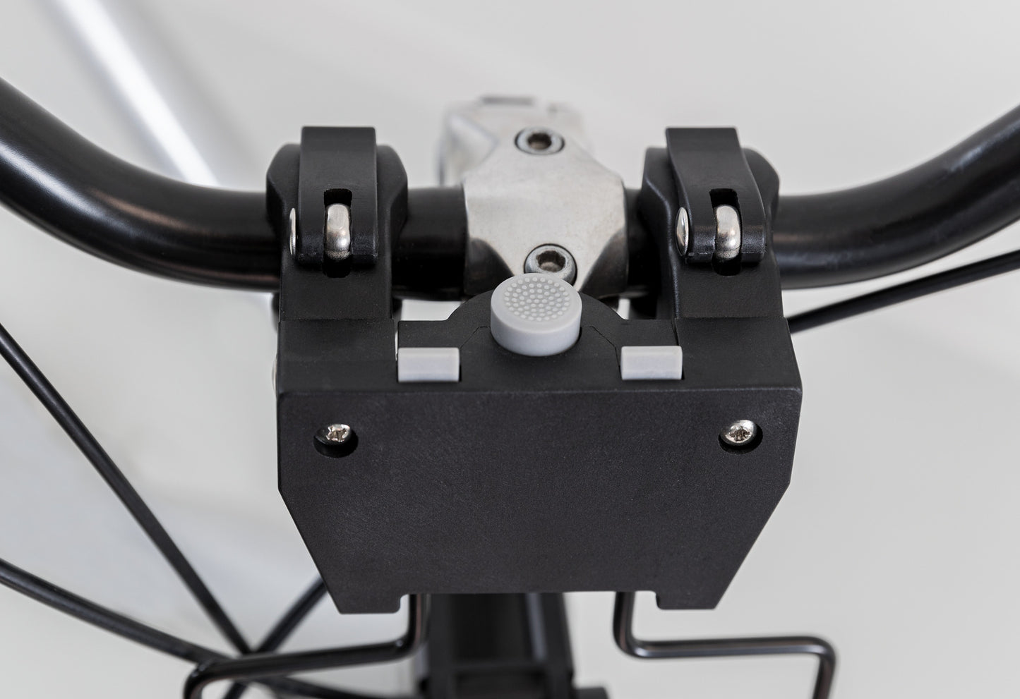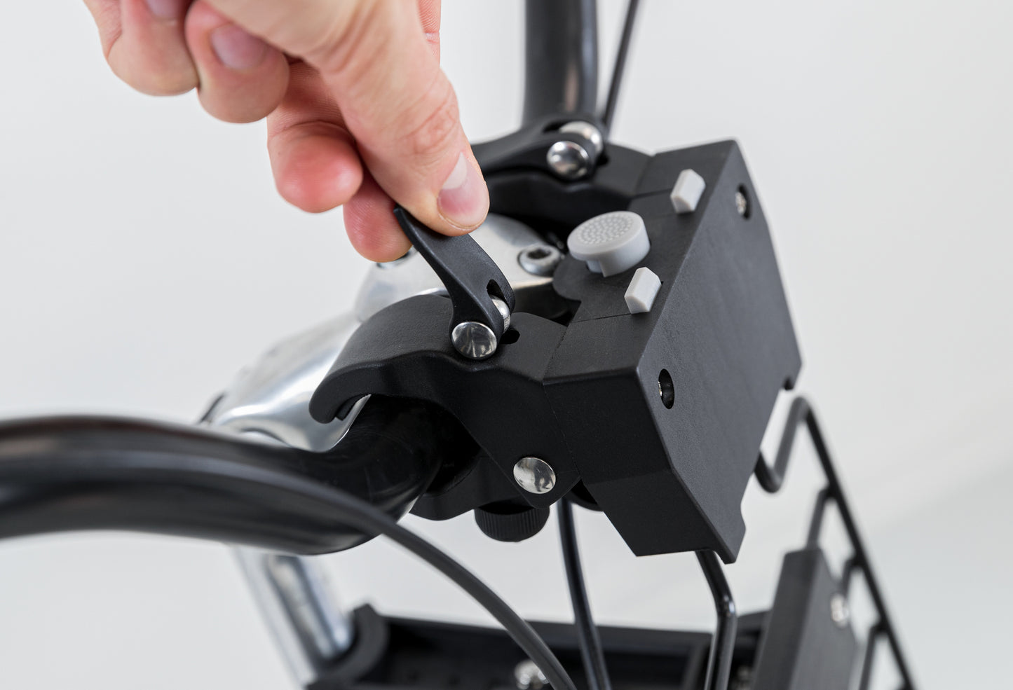 - De houder klemt om het stuur, waarna je de mand op het frame kunt plaatsen