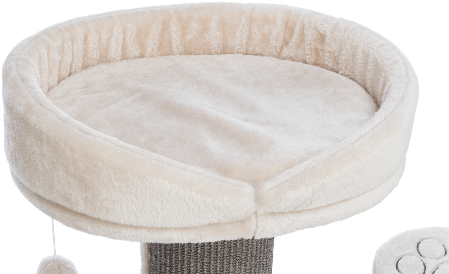 De Trixie Krabpaal Emil Lichtgrijs 69 x 59 x 96 cm is een uitgebreide maar toch compacte krabpaal voor de kat, met relax-mand en schuilhuisje met vitaal kussens die zorgen voor optimale drukverdeling. Krabben is een natuurlijke behoefte van de kat. Hiermee onderhoudt de kat zijn nagels en markeert hij zijn territorium. Biedt jouw kat daarom voldoende krabmogelijkheid, zoals met deze mooie krabpaal van Trixie. Deze krabpaal heeft een stam omwikkeld met sisal om aan te krabben, krabvlak op de bodem en is daarnaast uitgerust met een schuilplaats bekleed met pluche/fleece. De schuilplaats is voorzien van een vitaal kussen met visco-elastisch schuim dat zich aan de lichaamsvorm aanpast, net als het gevoerde ligplateau bovenop. Deze kussen zorgen voor optimale drukverdeling en daardoor beter slapen en soepeler opstaan. Voor goede bereikbaarheid van het ligplateau is de krabpaal uitgerust met opstaphulpjes. De stevige, massieve bodemplaat zorgt voor veel stabiliteit. Een krabpaal met veel mogelijkheden die toch compact is en daarmee ook geschikt voor kleine ruimtes.
