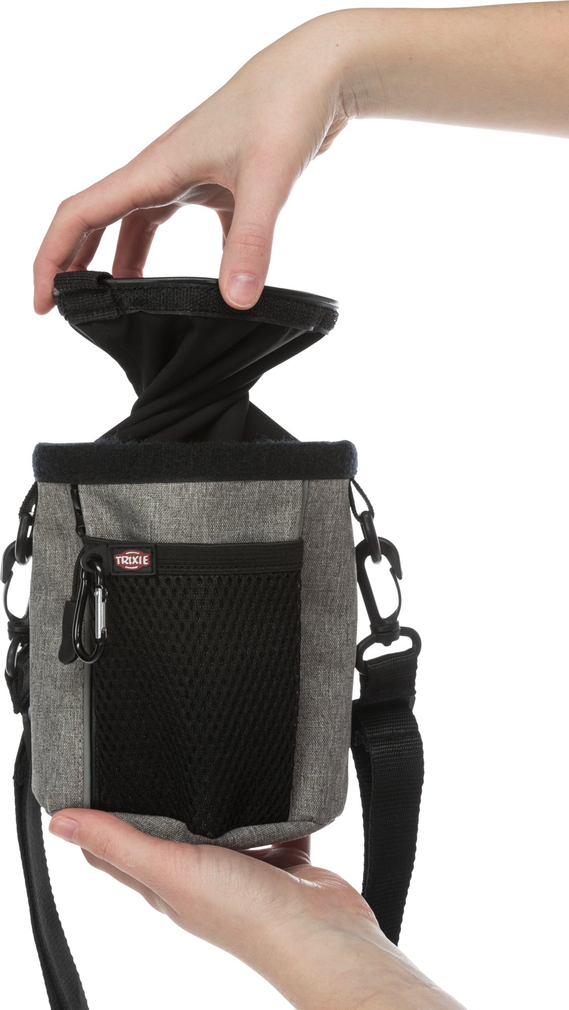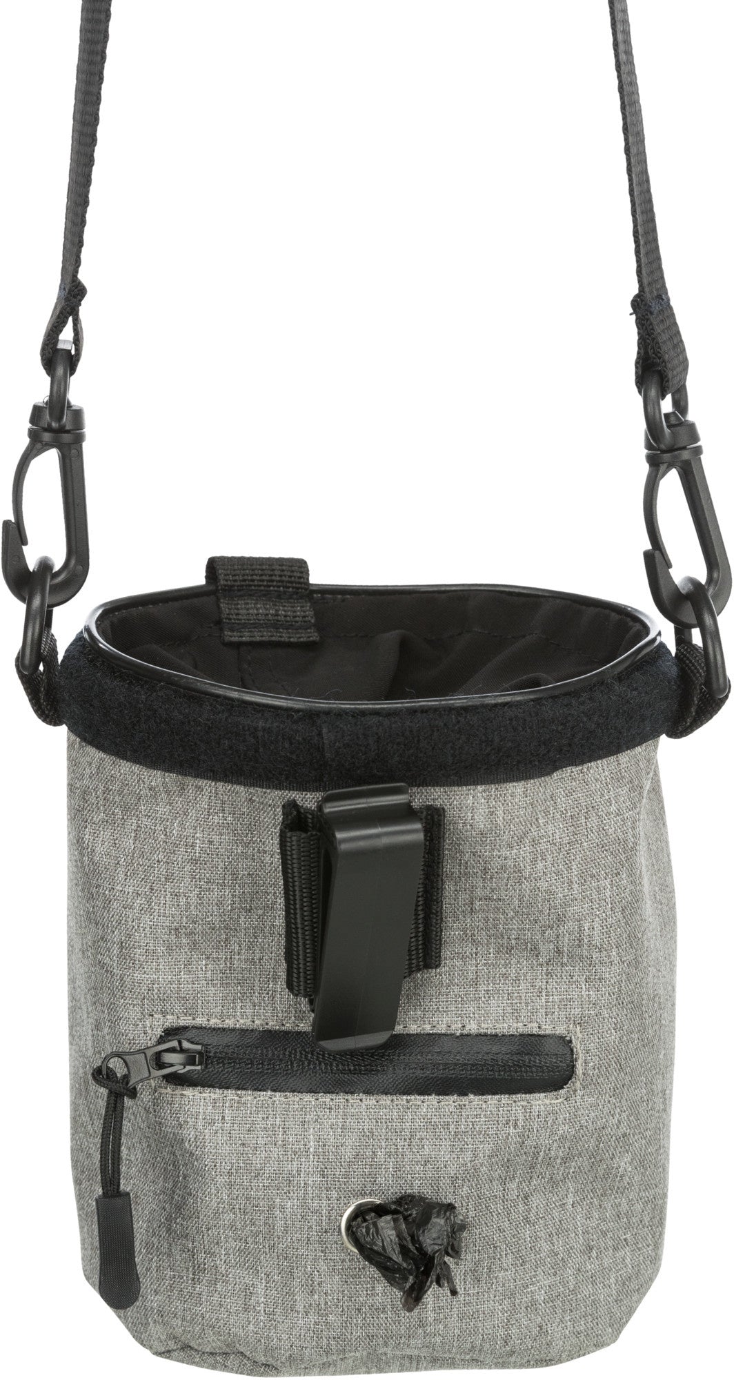Het Trixie Snackzakje Multi Twist Assorti 17X12 cm is een multifunctionele snackzak voor de hond, met regelbare draaisluiting, poepzakjeshouder en karabijnhaak, waterdicht. Dit handige snackzakje is van alle markten thuis! Uiteraard biedt dit handige tasje alle ruimte voor de beloningssnacks die jij op wandeling mee wilt nemen voor jouw hond. Ideaal aan dit tasje is de handige twist off-sluiting. Door de stof strakker of losser in elkaar te draaien, reguleer je de toegang tot de inhoud. De sluiting kan geheel gesloten worden indien er even geen snacks gepakt hoeven te worden en beschermt dan ook tegen de regen. Hiernaast is dit handige zakje voorzien van een geïntegreerde poepzakjes-dispenser, zodat je ook jouw poepzakjes altijd bij de hand hebt zonder nog een extra houder mee te hoeven nemen. Aan de karabijnhaak maak je bijvoorbeeld een hondenfluitje of clicker vast en in de buitenvakjes stop je losse spulletjes die je tijdens de wandeling meeneemt. Met reflecterende buitenvakken die het tasje goed zichtbaar maken! Inclusief traploos verstelbare riem.